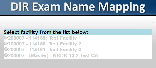 Note: Several exceptions may require mapping at the facility level. For example, in the case of a corporate account that has multiple facilities and only one facility actively participates in the DIR, the user profiles Facility Administrator, Registry Administrator, and Facility User may perform the mapping. However, facility personnel should coordinate with the CAA to ensure mappings performed at the corporate account level will not override mappings at the facility account level. Please contact the NRDR Help Desk for guidance prior to carrying out mapping at the facility account level.