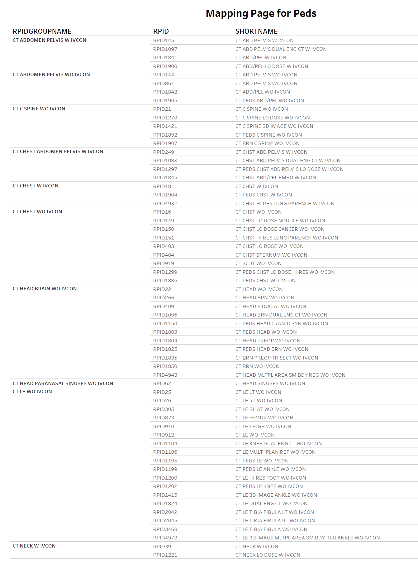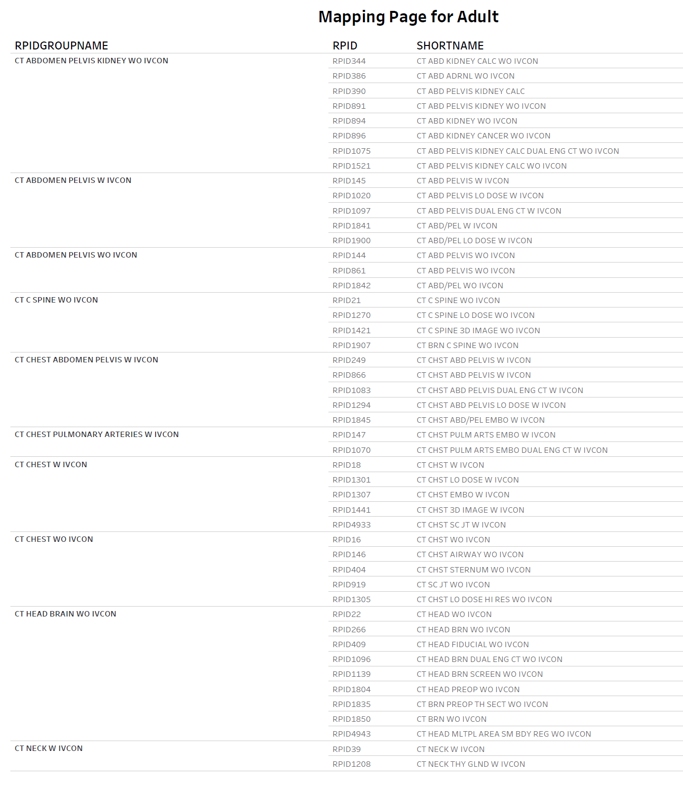 Mapped exams can be looked up to corresponding RPID Group Name shown in the report.