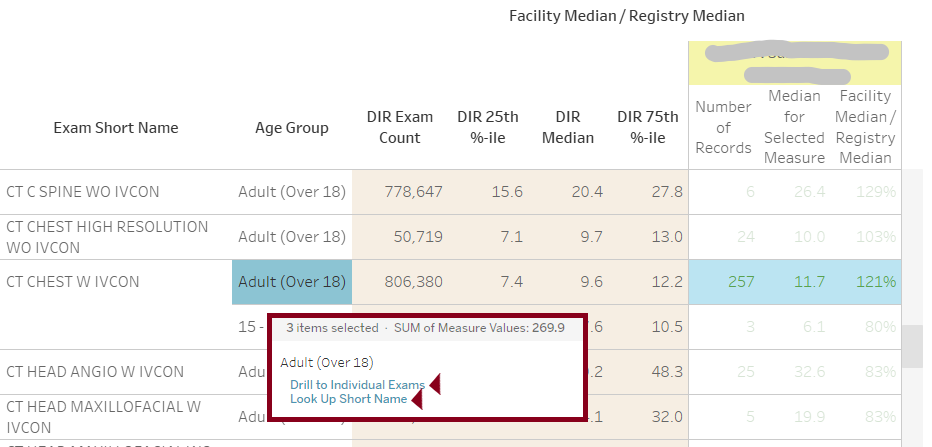 The DIR CT Facility Comparison Report provides insight into Corporate Account and Facility performance as compared to the registry as a whole for the dose indices' measures: CTDIvol, Dose Length Product (DLP), and Size-Specific Dose Estimate (SSDE). The report highlights dose outliers for a variety of characteristics, e.g., exam type, body area, scanner, etc. The data are refreshed daily to provide up-to-date information.
